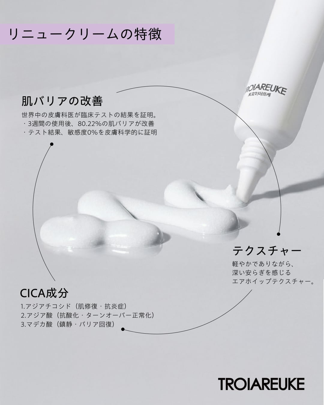 低刺激性でバリア機能を強化する処方で、3週間の使用で刺激がなく、肌トラブルを速効的に改善しトラブルが起きにくい肌を育てます。エビデンスも多数あり。