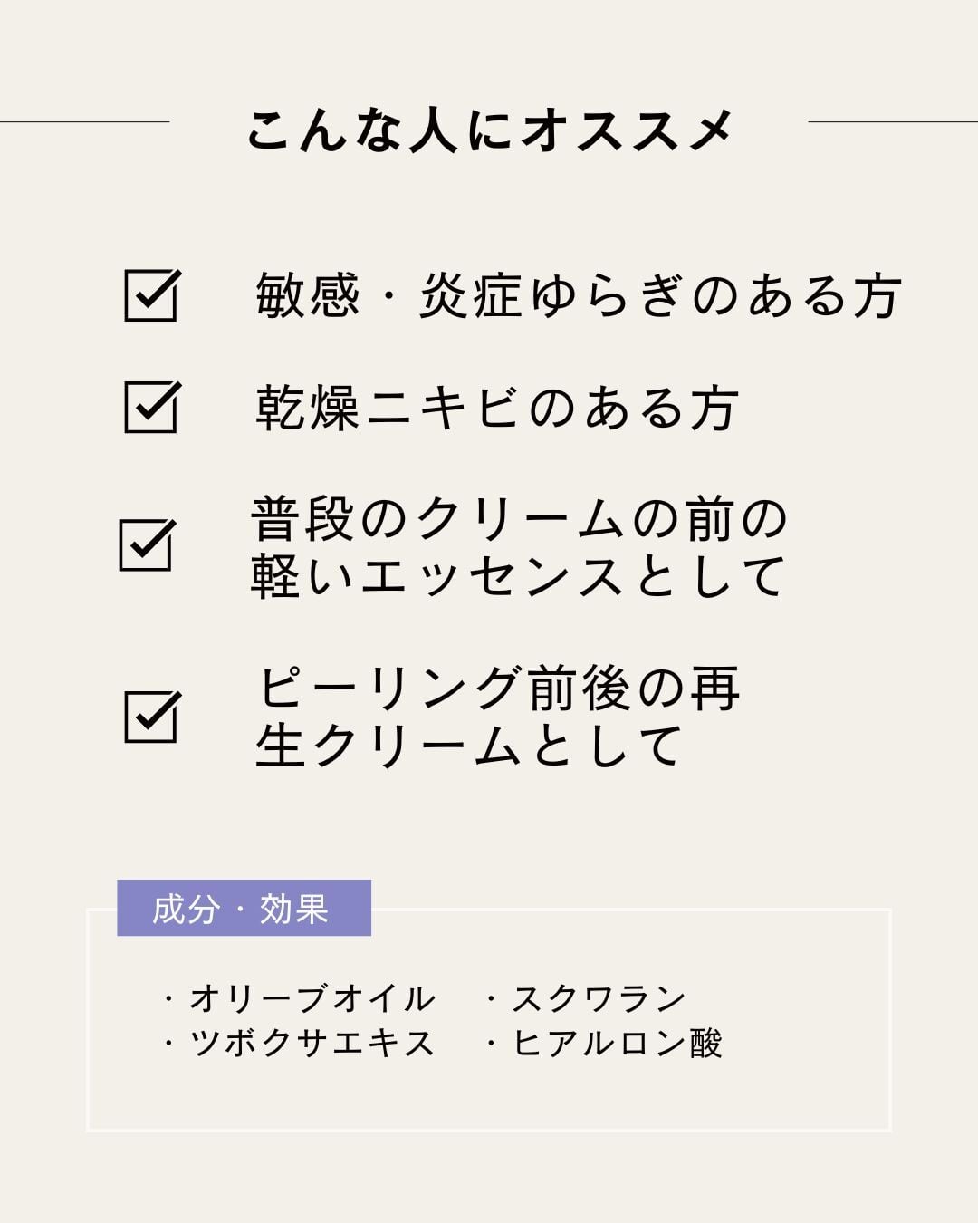 ツボクサエキス、スクワラン、オリーブオイル